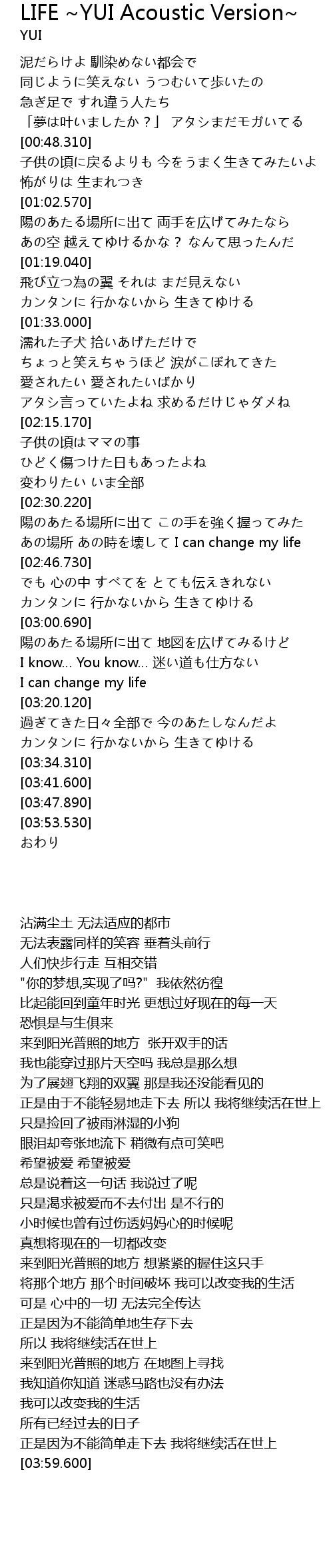 | [00:50.360] | 子供の頃に戻るよりも 今をうまく生きてみたいよ |