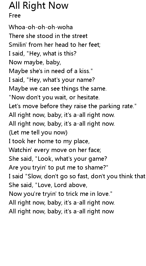 All right now, baby, it's a-all right now |