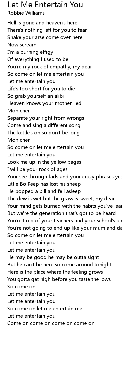 So come on let me entertain me |