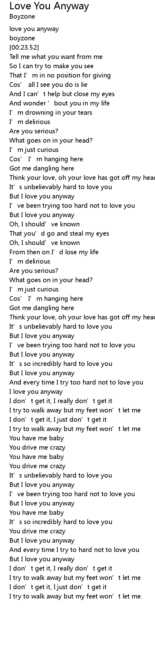 | [02:23.69] | I try to walk away but my feet won' t let me |