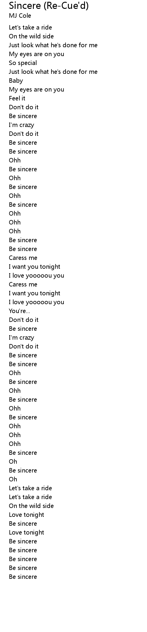| Song | Sincere (Re-Cue'd) |