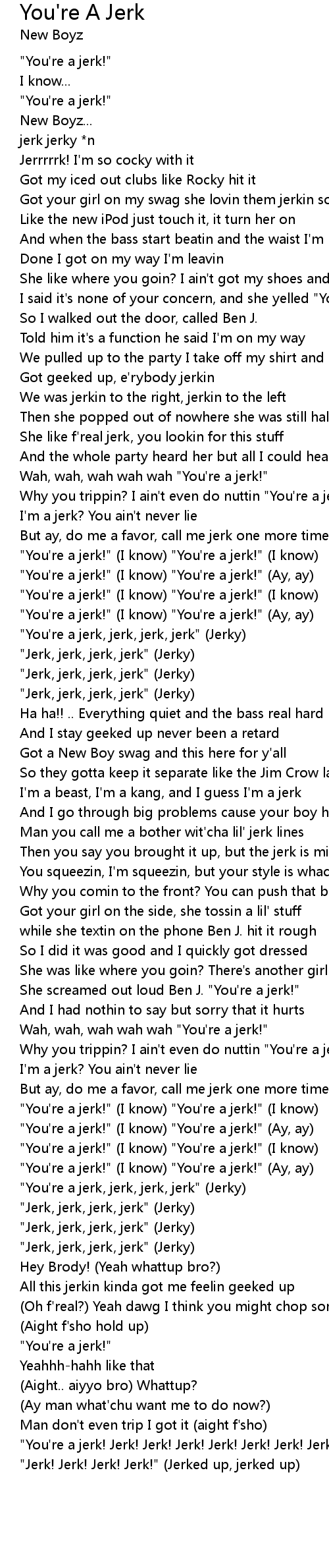 "You're a jerk, jerk, jerk, jerk" (Jerky) |