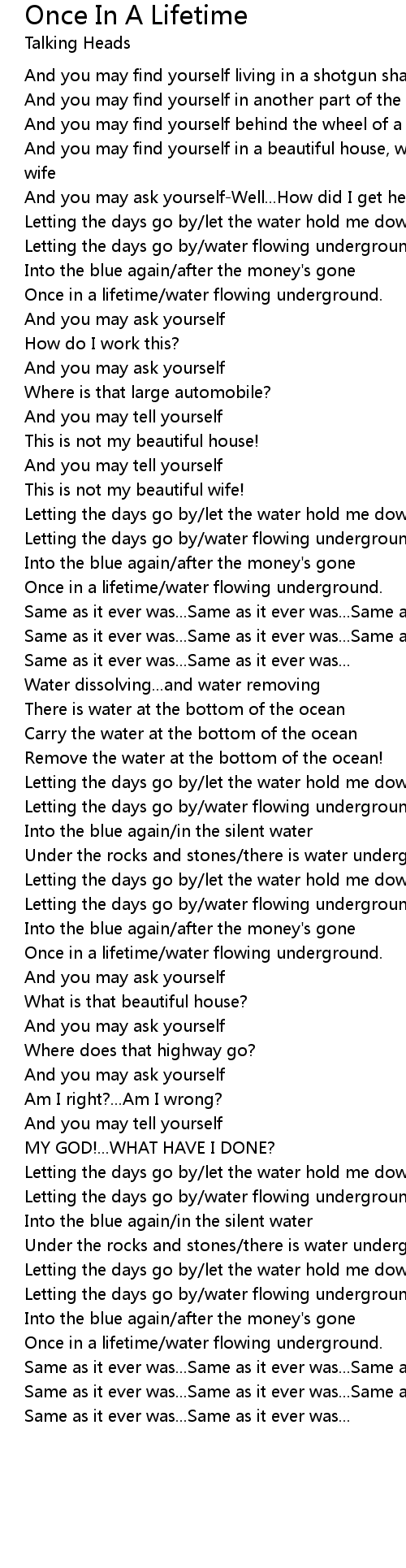 Same as it ever was...Same as it ever was...Same as it ever was... |