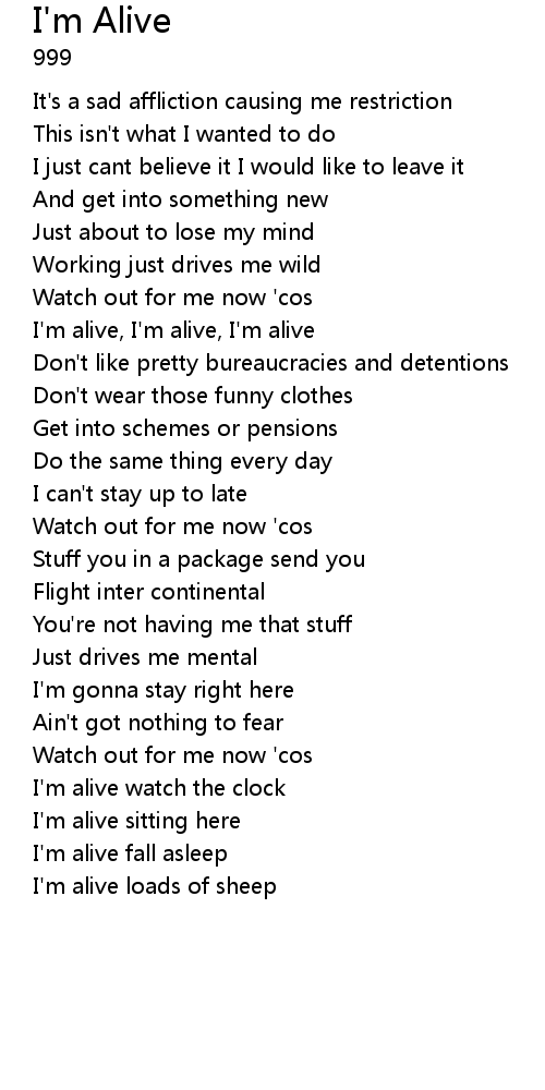 I'm alive, I'm alive, I'm alive |