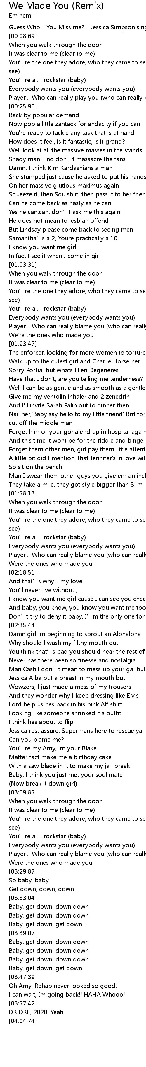 | [00:02.69] | Guess Who… You Miss me?... Jessica Simpson sing the chorus |