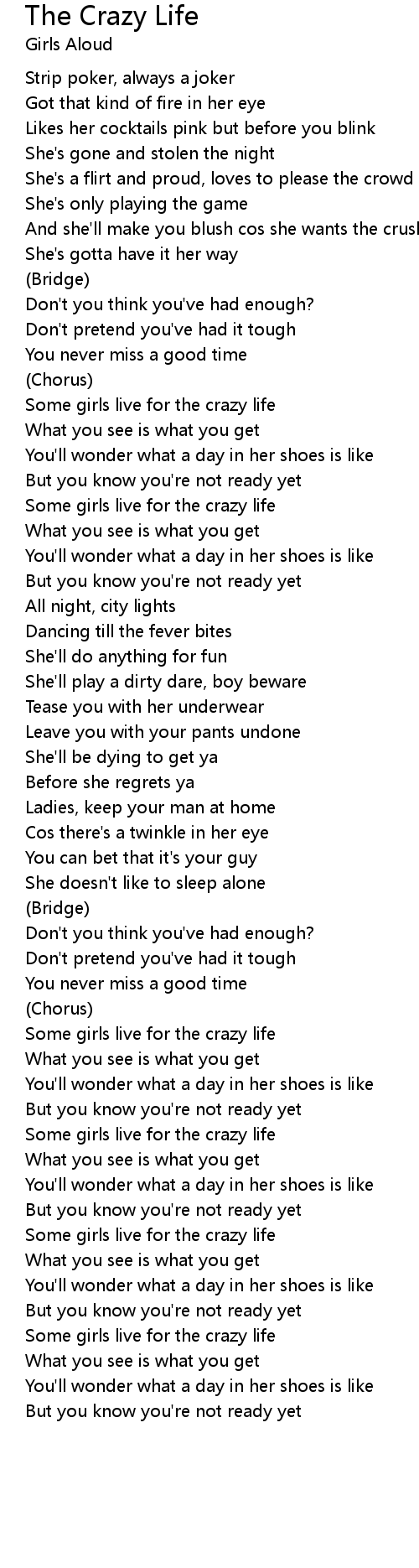 Some girls live for the crazy life |