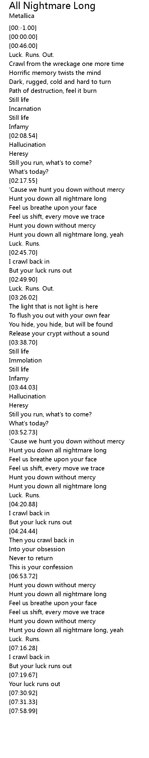 Hunt you down all nightmare long |
