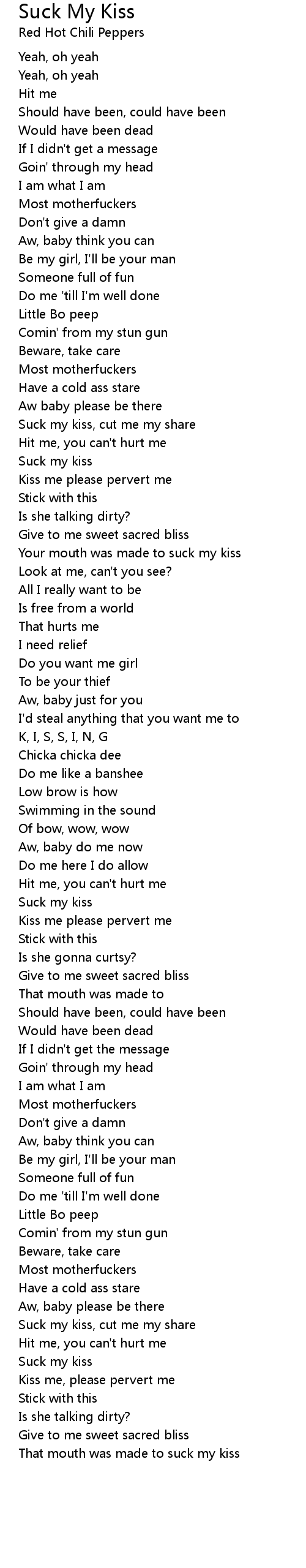 Suck my kiss, cut me my share |