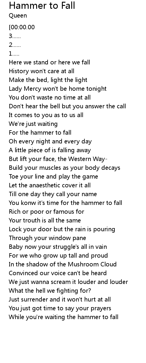Hammer to Fall Lyrics