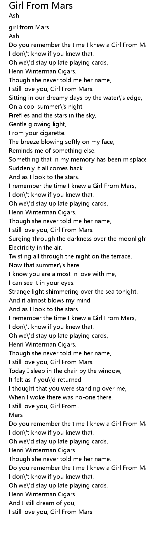 [00:00.93] Do you remember the time I knew a Girl From Mars?