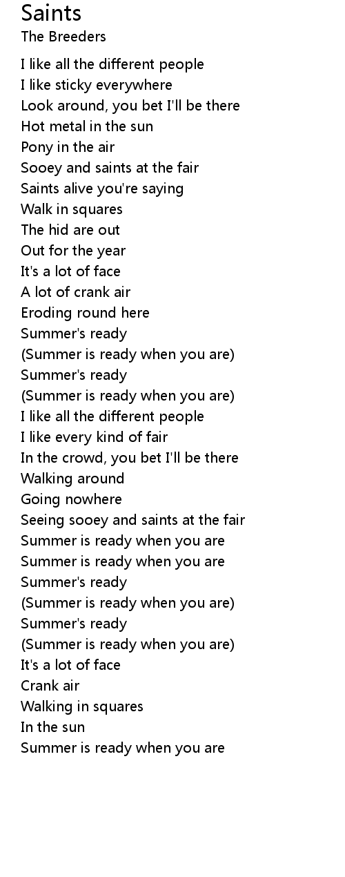 Saints alive you're saying |