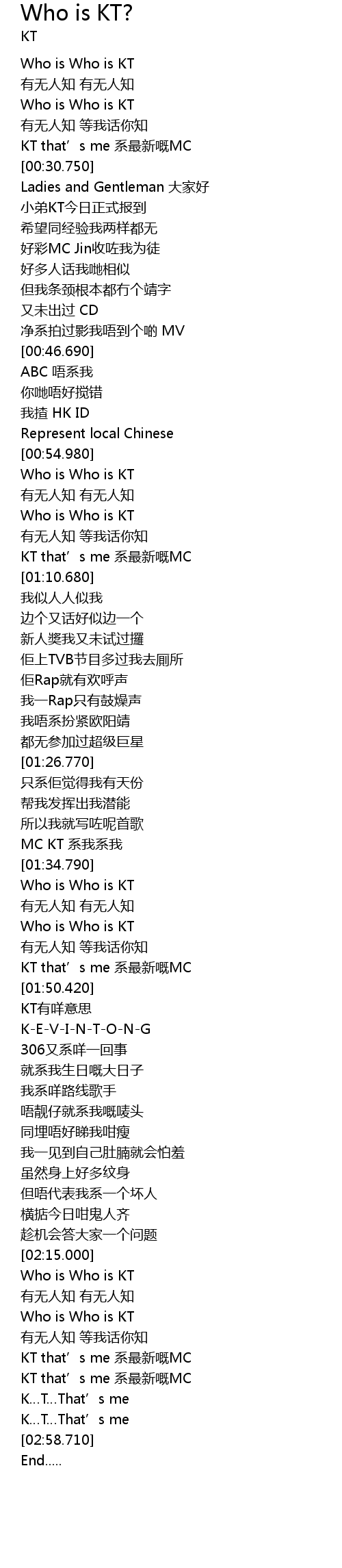 | [02:30.900] | KT that’s me 系最新嘅MC |