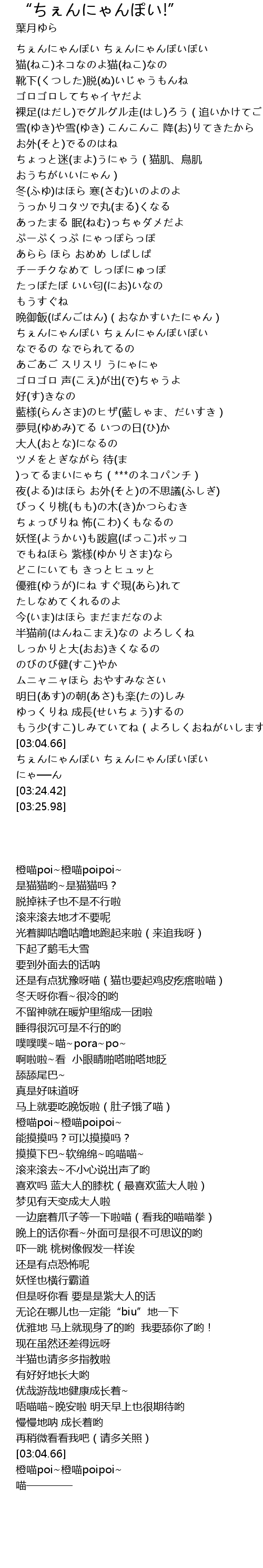 | [03:07.41] | ちぇんにゃんぽい ちぇんにゃんぽいぽい |
