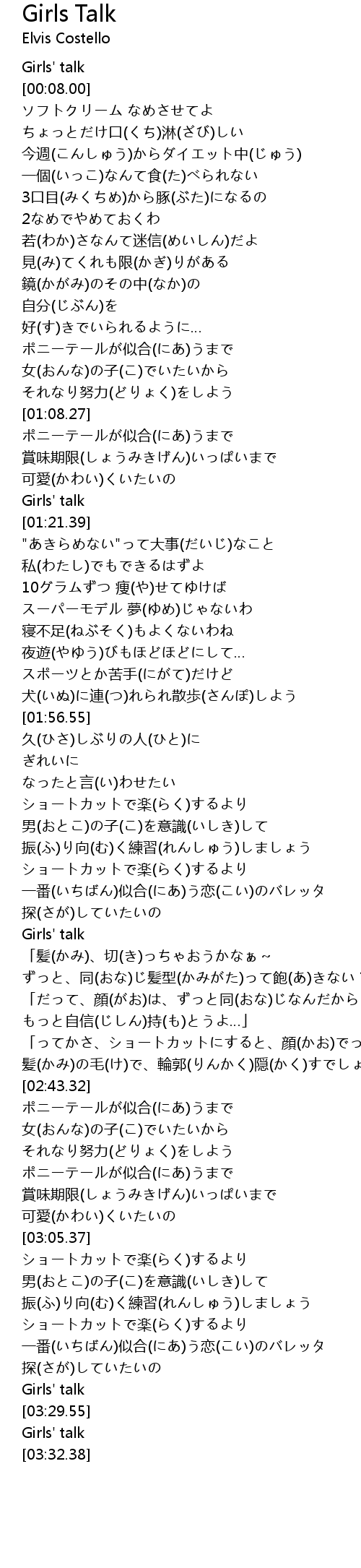 | [03:30.81] | Girls' talk |