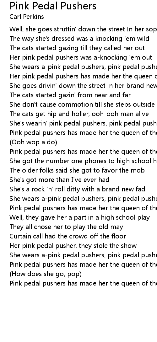 She's wearin' pink pedal pushers, pink pedal pushers |
