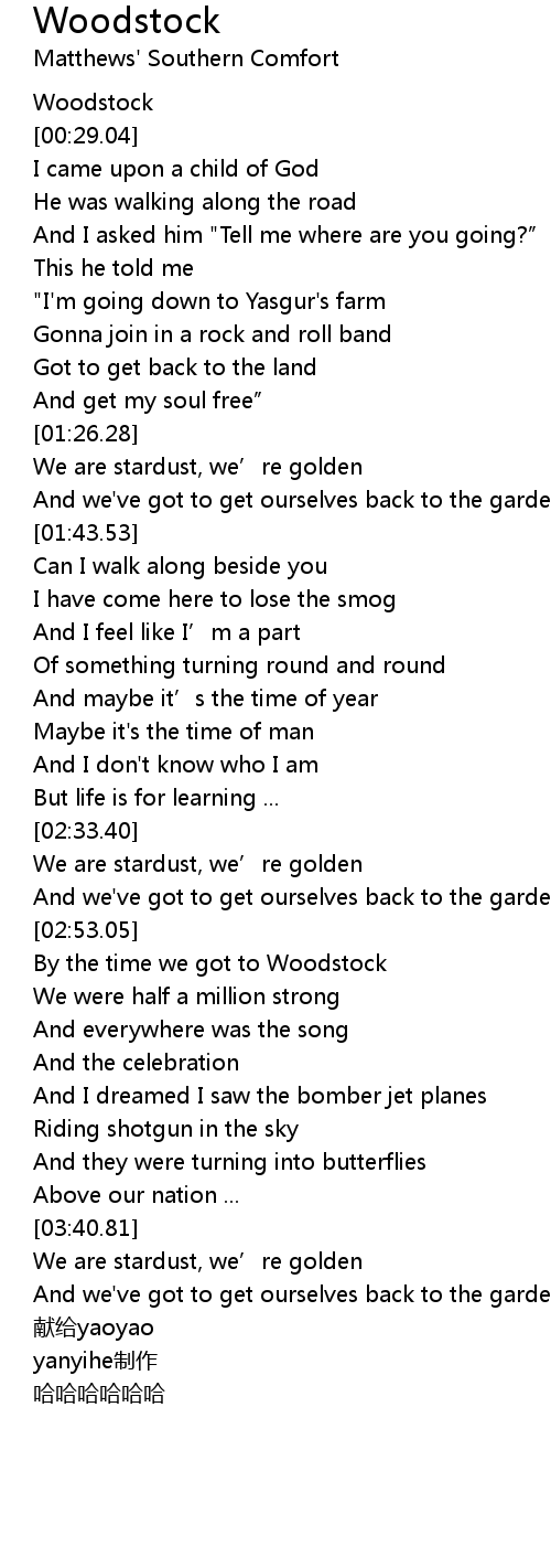 | [03:50.03] | And we' ve got to get ourselves back to the garden |