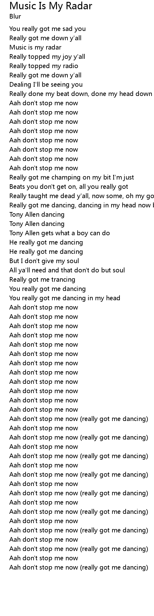 Aah don't stop me now (really got me dancing) |