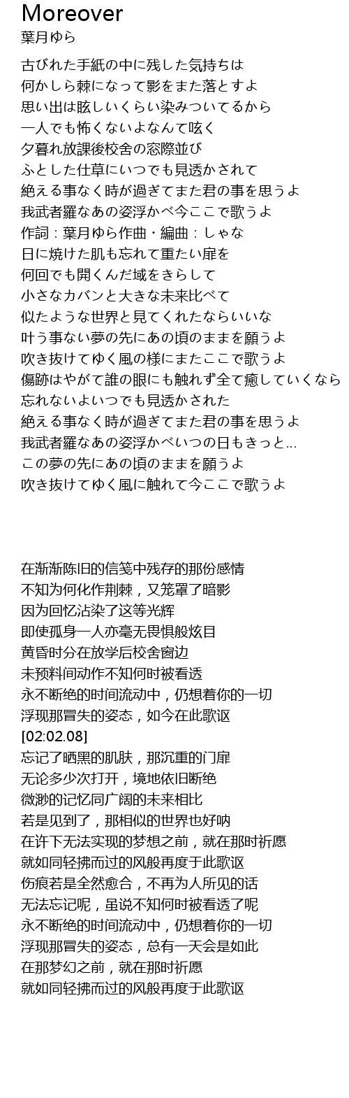 | [02:02.08] | 作詞:葉月ゆら作曲・編曲:しゃな |