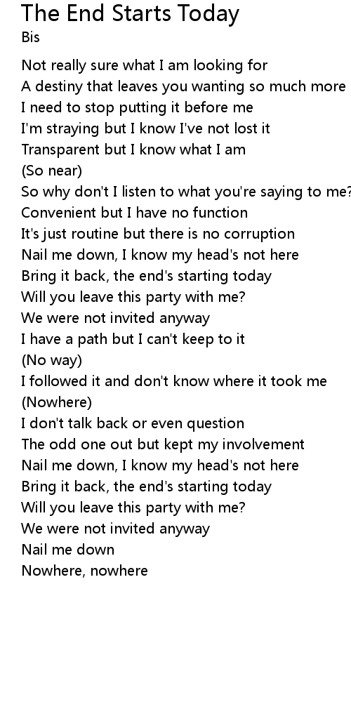 Bring it back, the end's starting today |