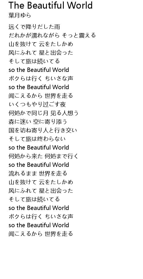 | [01:15.87] | so the Beautiful World |