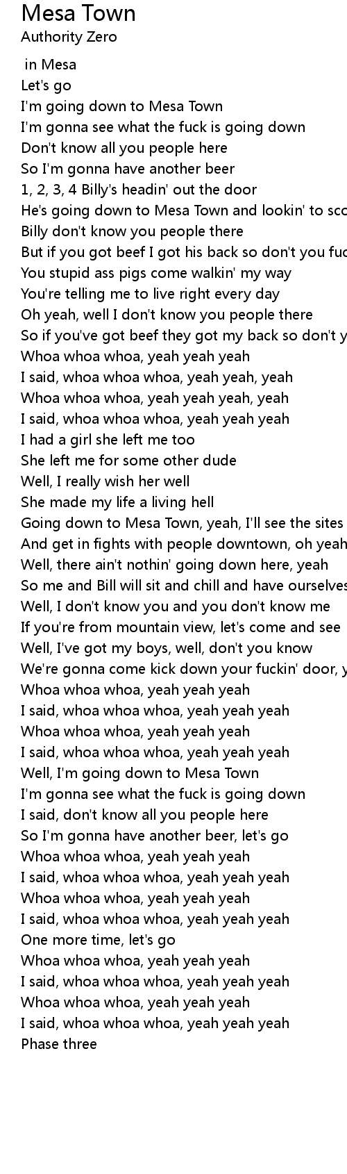 I'm going down to Mesa Town |