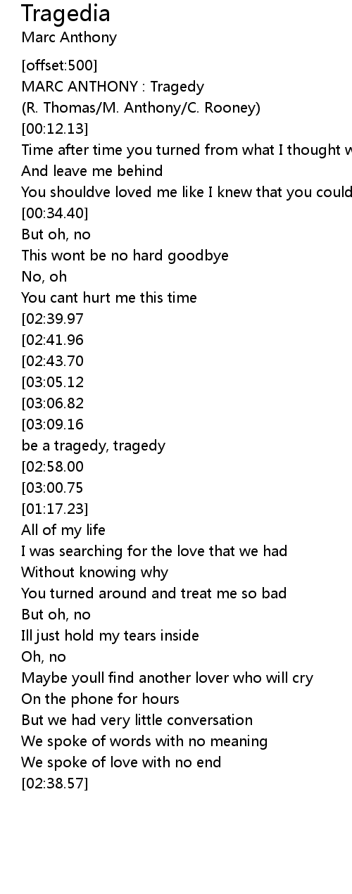 [03:17.53][02:43.70][01:53.94][00:55.48] It doesnt mean its a tragedy, tragedy