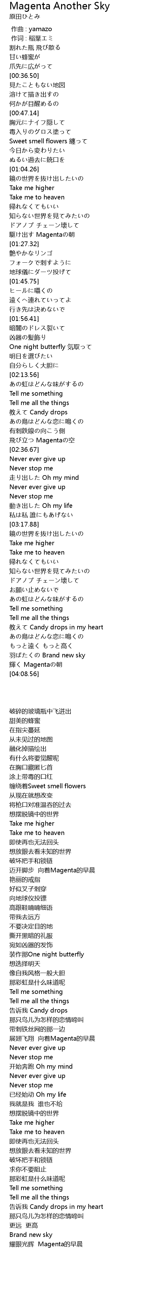 | [02:32.31] | 飛び立つ Magentaの空 |
