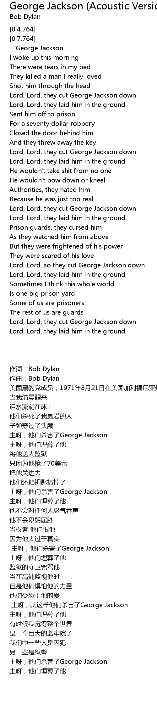 | [2:53.704] | Lord, Lord, they cut George Jackson down |