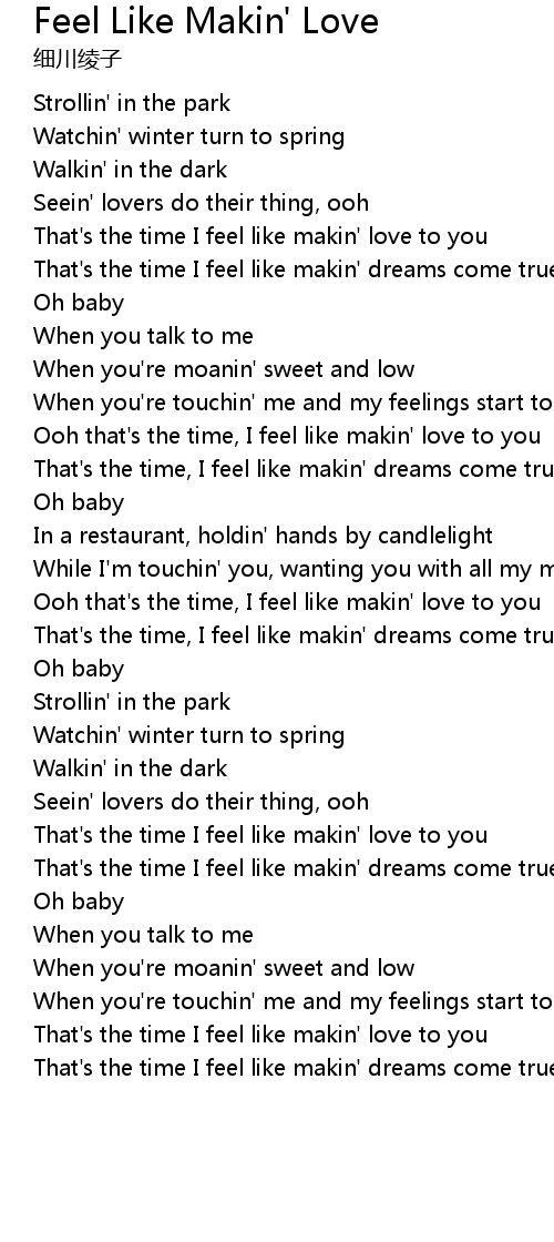 Ooh that's the time, I feel like makin' love to you |