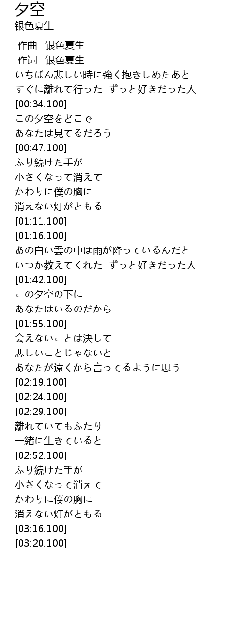 | [00:24.100] | すぐに離れて行った ずっと好きだった人 |