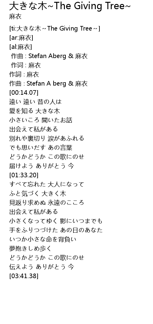 | [ti:大きな木~The Giving Tree~] | |