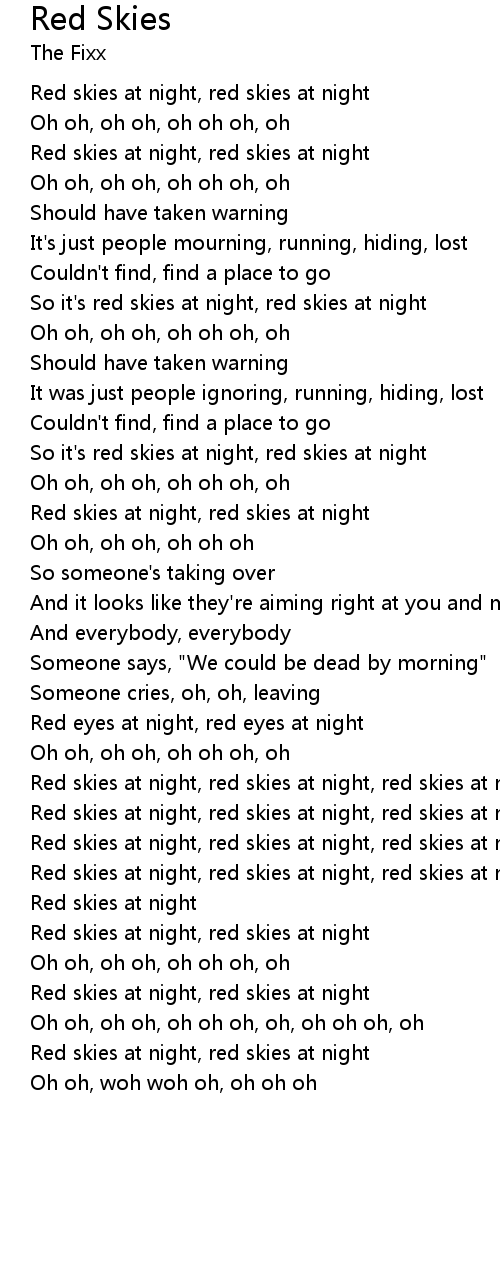 Red skies at night, red skies at night, red skies at night |