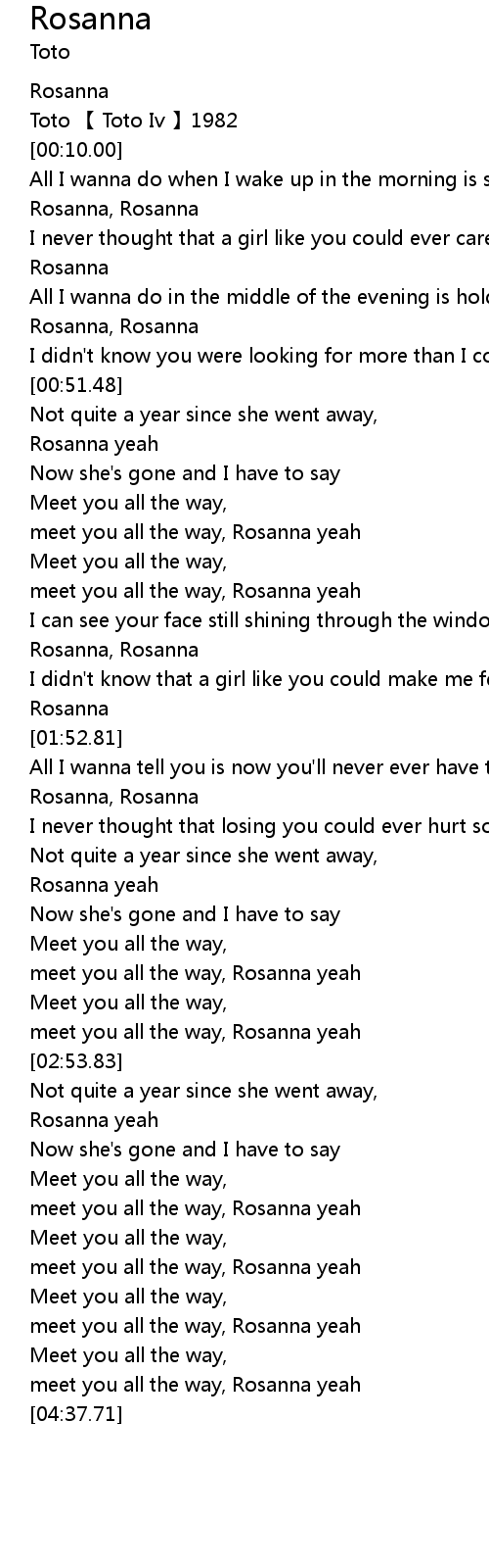 | [00:42.40] | Rosanna, Rosanna |