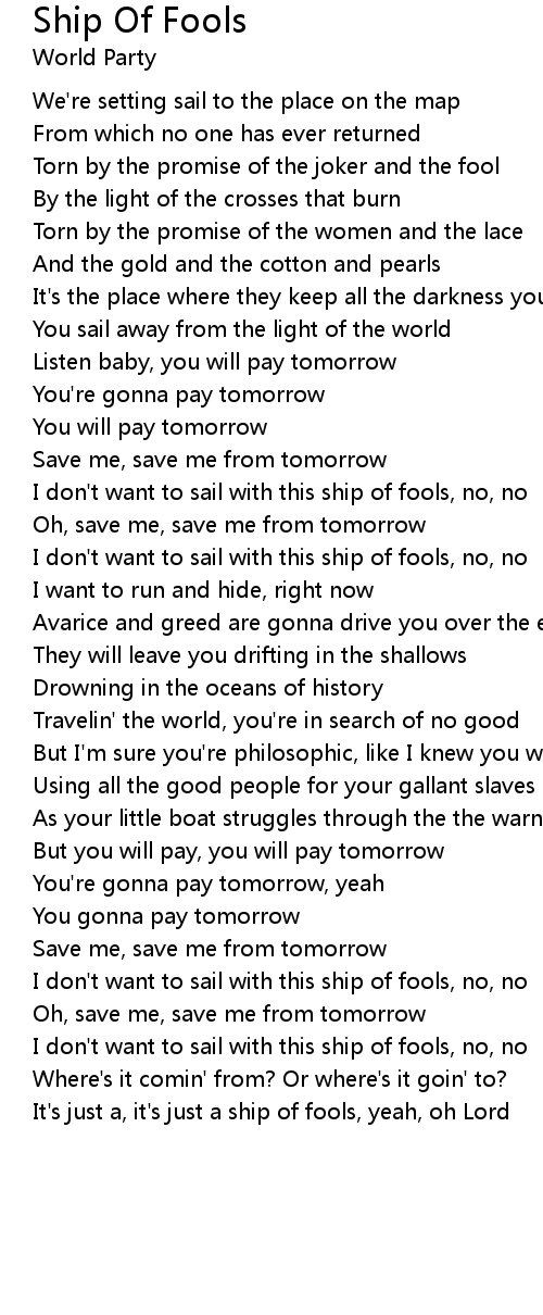 I don't want to sail with this ship of fools, no, no |