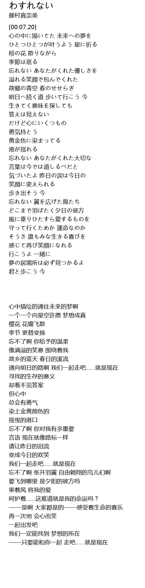 | [02:20.52] | 忘れない あなたがくれた大切な |