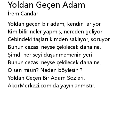 | Yoldan Geçen Bir Adam Sözleri, | |
