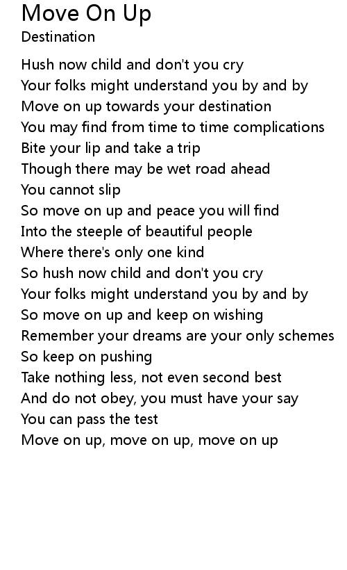 So move on up and peace you will find |