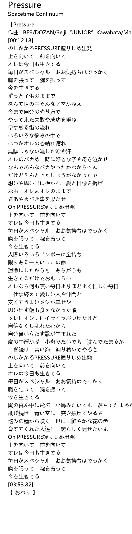 | [03:28.92] | Oh PRESSURE握りしめ出発 |