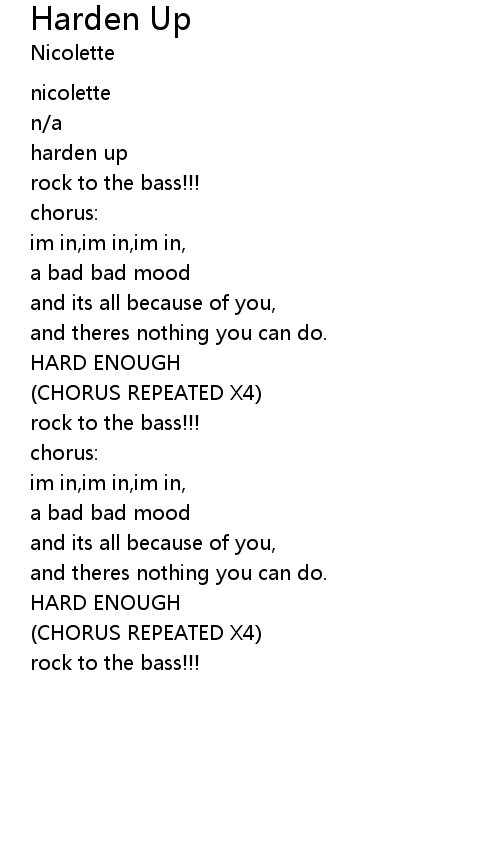 | Song | Harden Up |