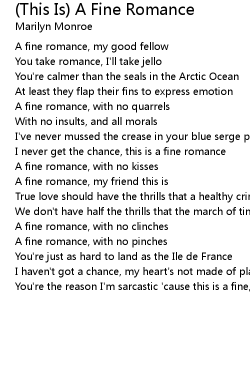 You're the reason I'm sarcastic 'cause this is a fine, fine romance |