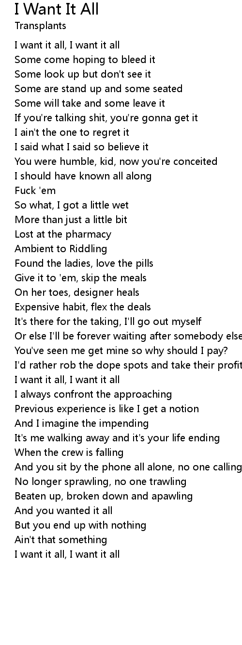 I want it all, I want it all |