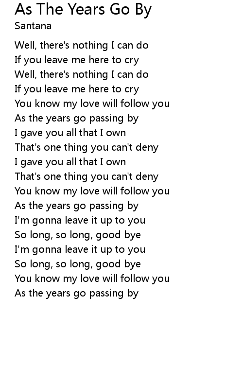 As the years go passing by |