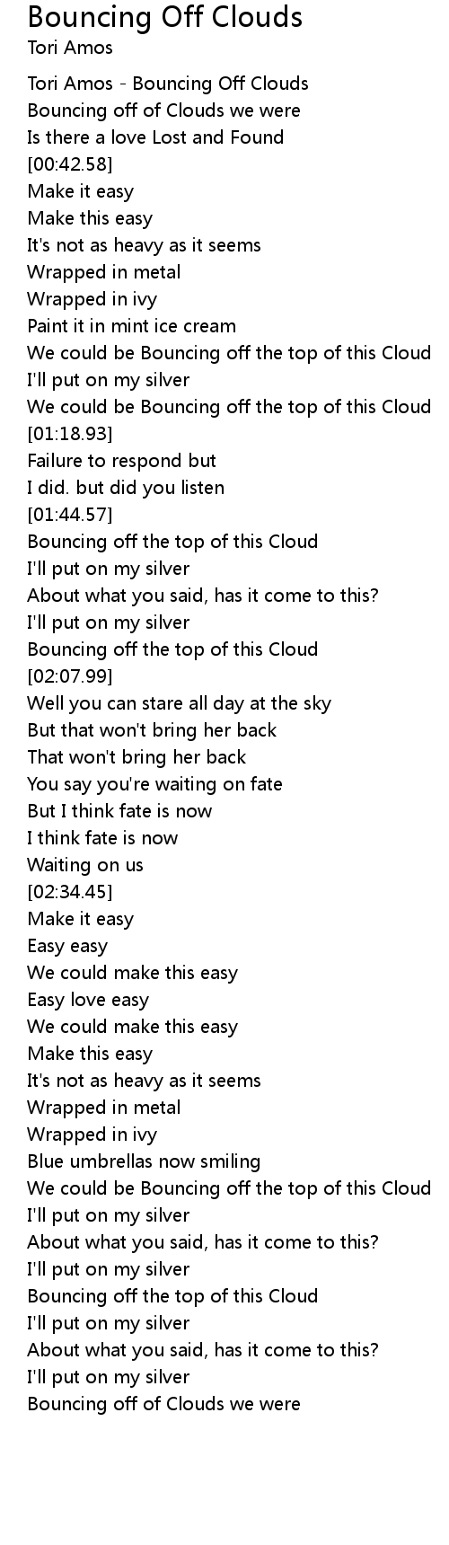 [00:00.75] Tori Amos - Bouncing Off Clouds