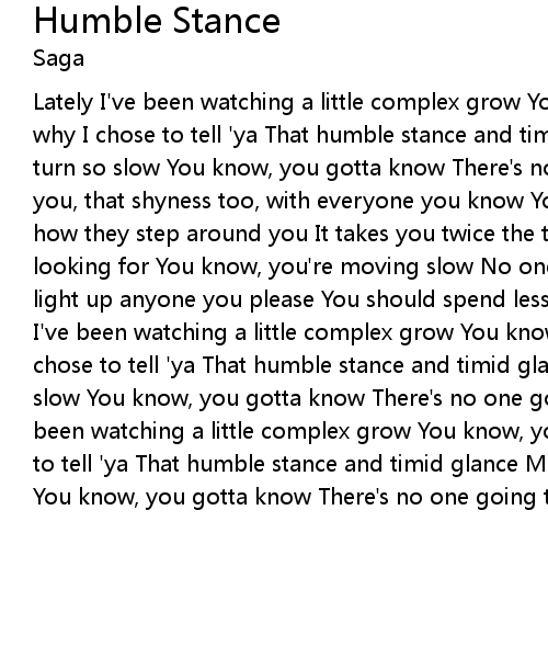 Lately I've been watching a little complex grow You know, you gotta know That's why I chose to tell 'ya That humble stance and timid glance Makes your world turn so slow You know, you gotta know There's no one going to help you Watching you, that shyness too, with everyone you know You know, you gotta know That's how they step around you It takes you twice the time to find the things you're looking for You know, you're moving slow No one will stop to tell you You can light up anyone you please You should spend less time down on your knees Lately I've been watching a little complex grow You know, you gotta know That's why I chose to tell 'ya That humble stance and timid glance Makes your world turn so slow You know, you gotta know There's no one going to help you (x5) Lately I've been watching a little complex grow You know, you gotta know That's why I chose to tell 'ya That humble stance and timid glance Makes your world turn so slow You know, you gotta know There's no one going to help you |