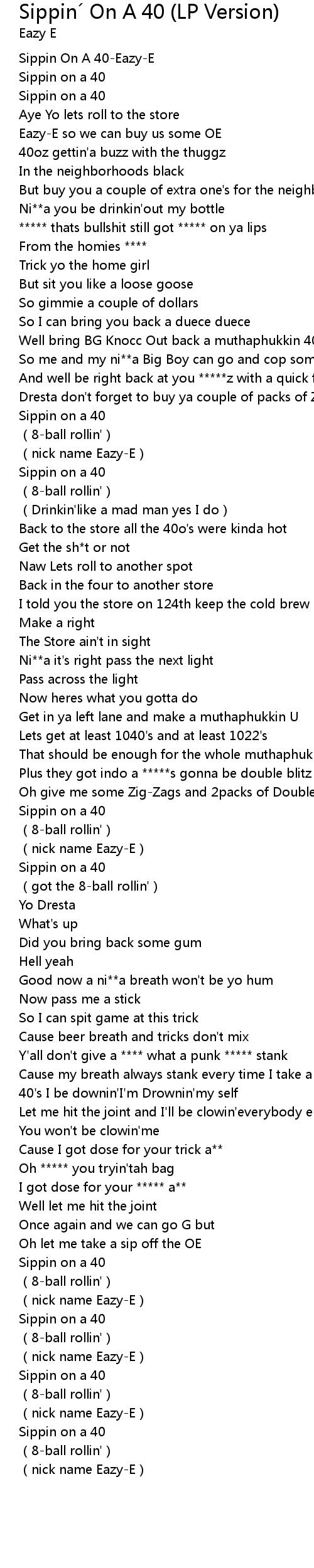 | [00:37.486] | 40oz gettin' a buzz with the thuggz |