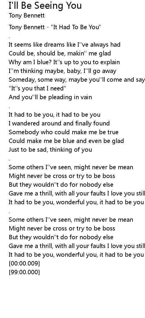 Tony Bennett - "It Had To Be You" |