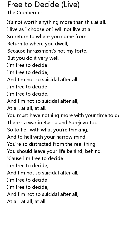 'Cause I'm free to decide |