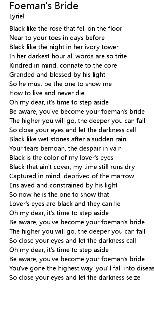 Be aware, you've become your foeman's bride |