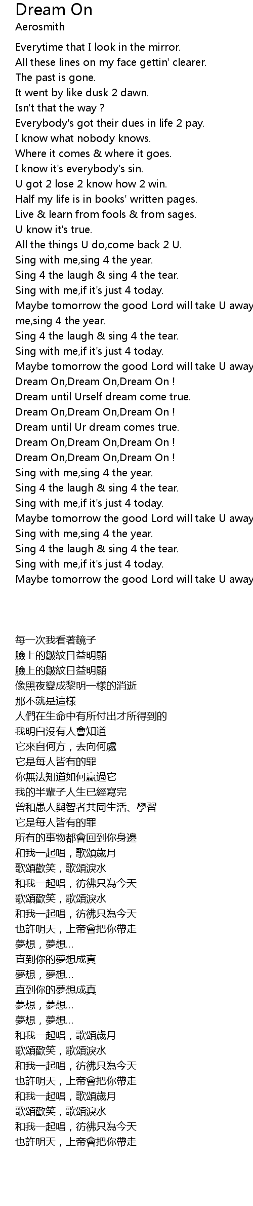 | [03:25.170] | Dream On,Dream On,Dream On ! |