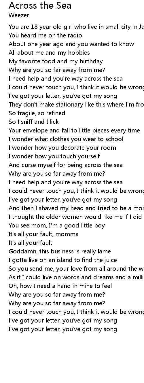 I need help and you're way across the sea |
